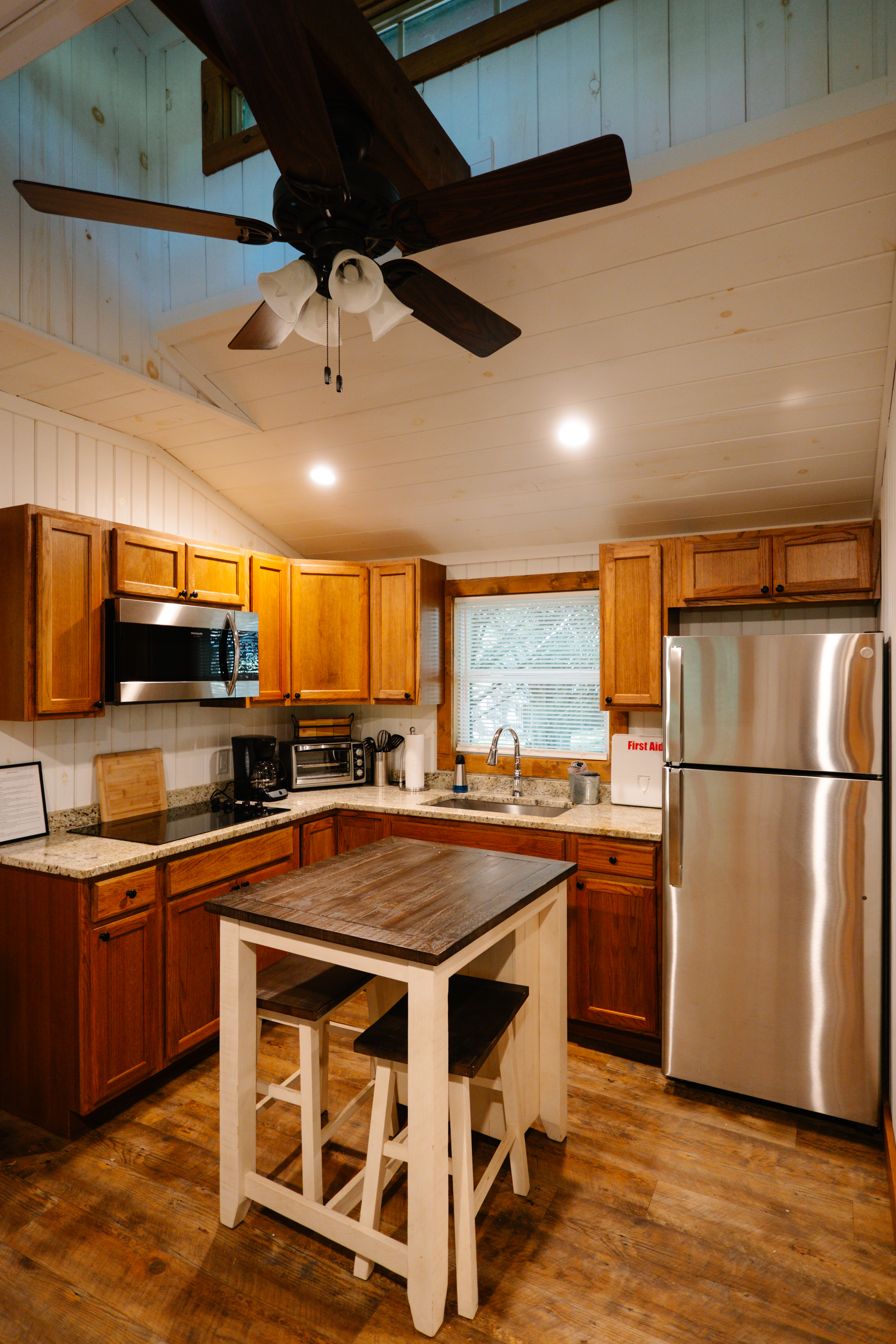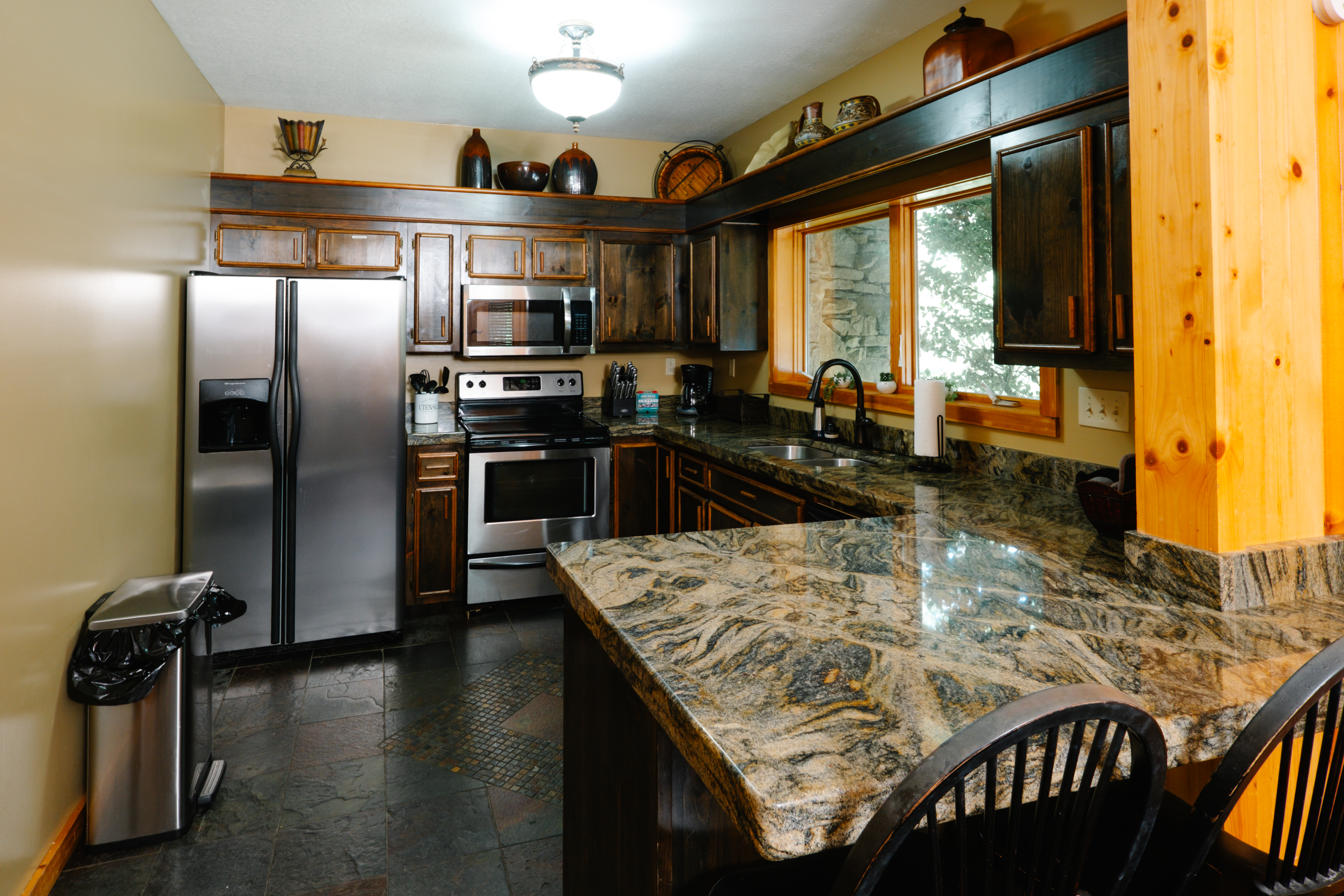 - Full kitchen, stocked refrigerator and pantry