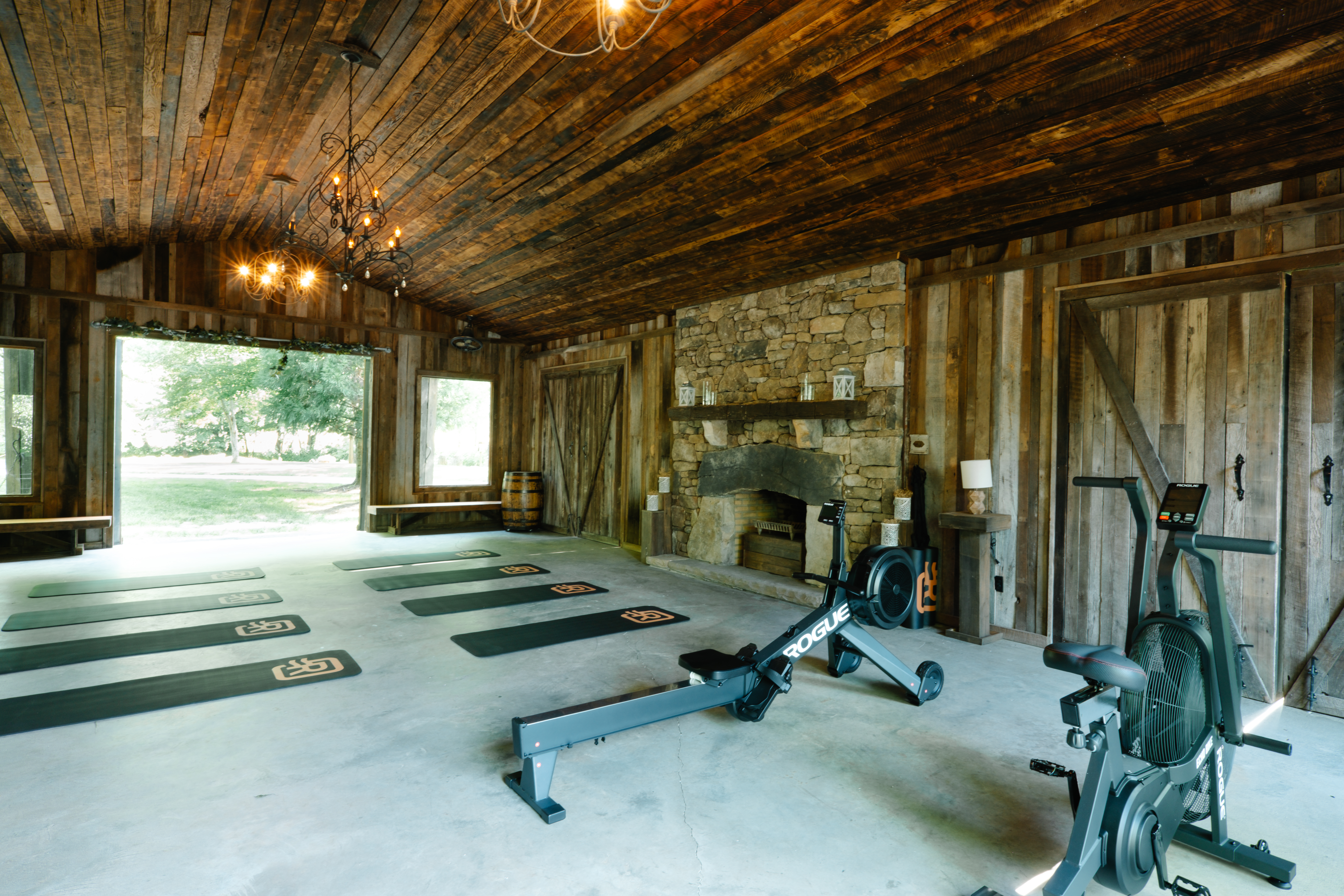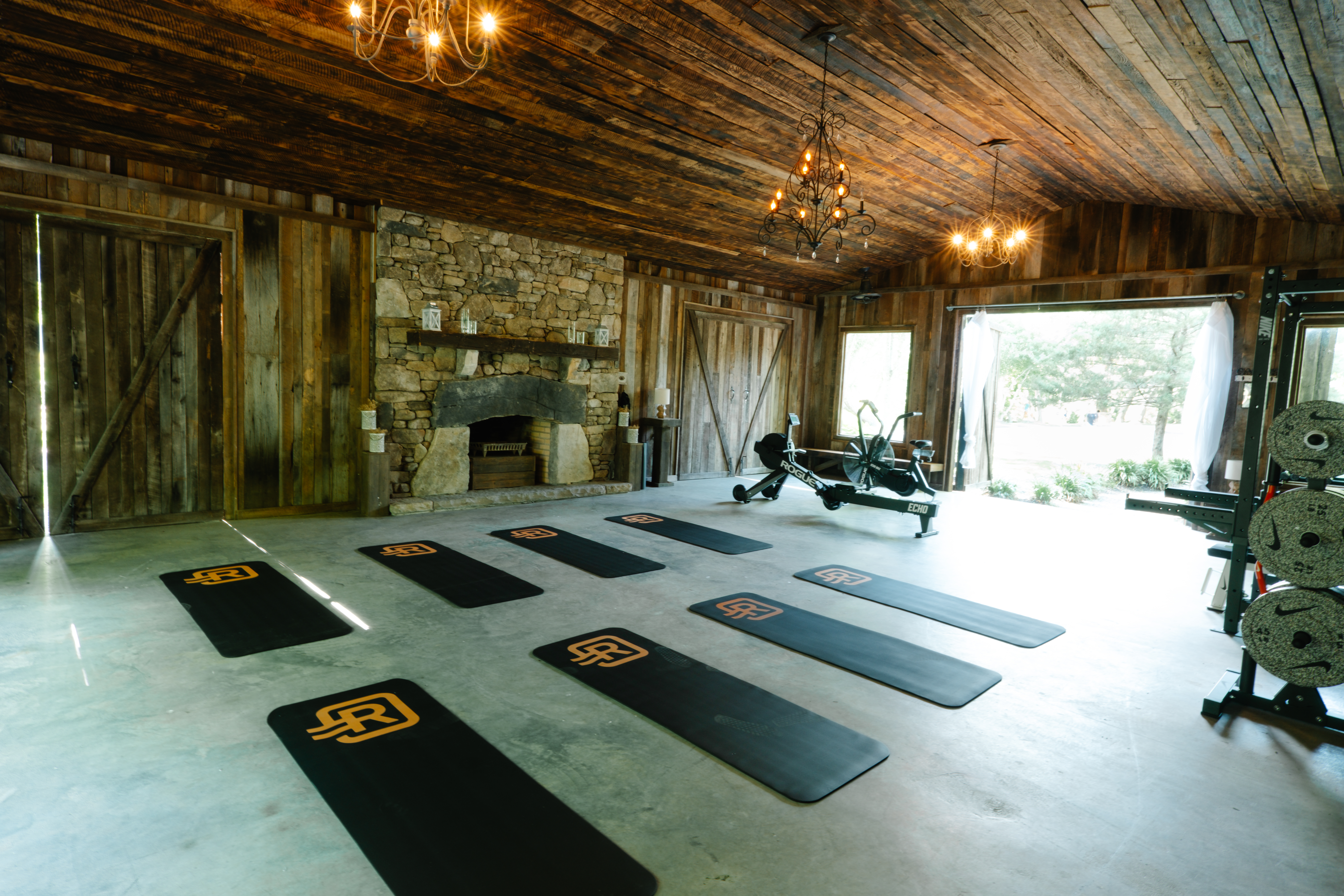 - Full gym complete with yoga mats, Nike Strength Bench Press, Nike Strength Dumbells, Rogue Rower, Rogue Air Bike